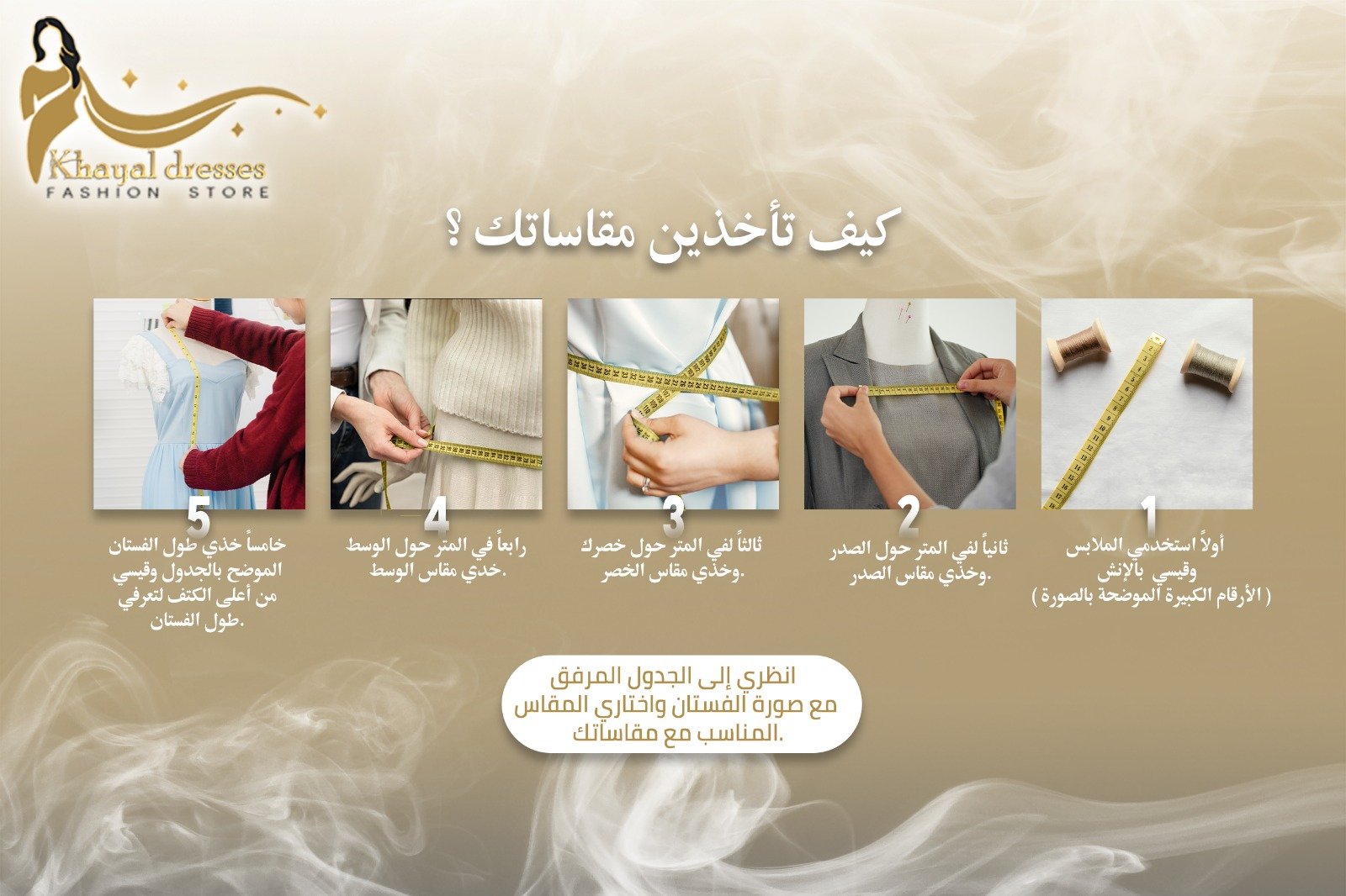 جدول المقاسات